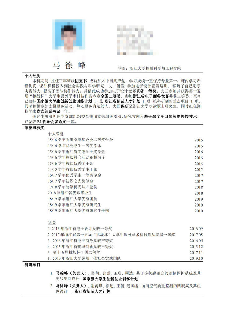 个人简历——马徐峰